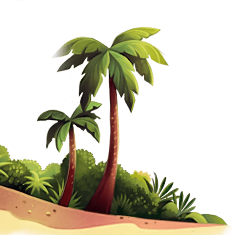 Set in a tropical environment filled with warmth and subtle movement, it
